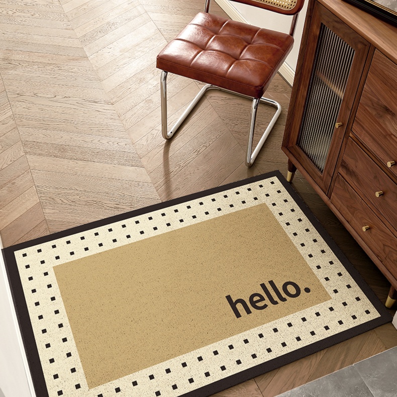 洗練されたデザインの泥落とし玄関マットが登場。幾何学模様の縁取りと「こんにちは」の文字が、おしゃれな印象を与える。実用性も兼ね備え、泥や汚れをしっかりキャッチ。来客を温かく迎え入れ、スタイリッシュな空間を演出するアイテム。四角いドット模様のフレームが玄関を華やかに彩り、毎日を特別なものにしてくれる。おしゃれと機能性を両立した玄関マットで、心地よいおもてなしを実現。