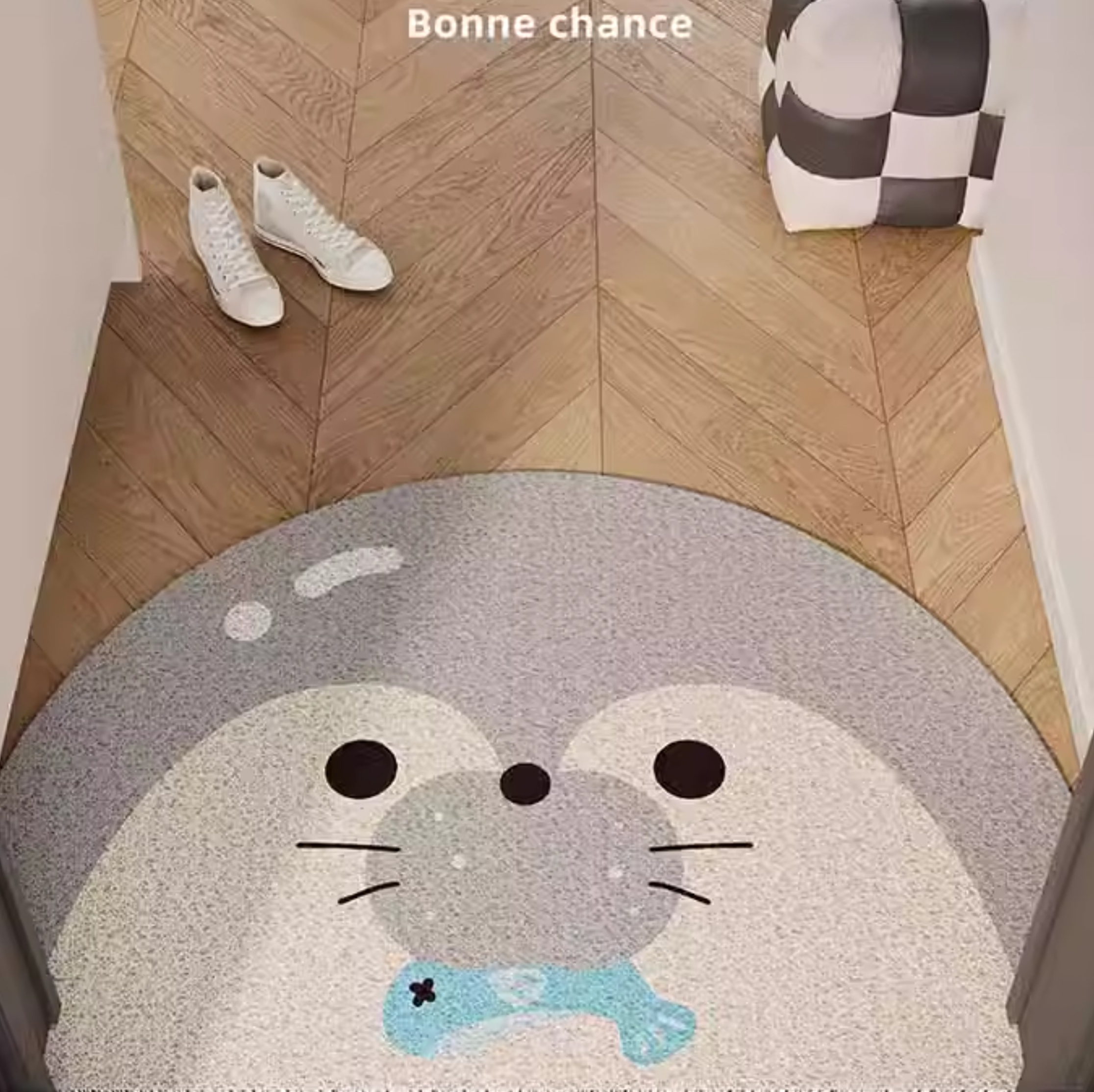 愛らしいペンギンやカワウソの顔をデザインした半円形の室内用玄関マット。