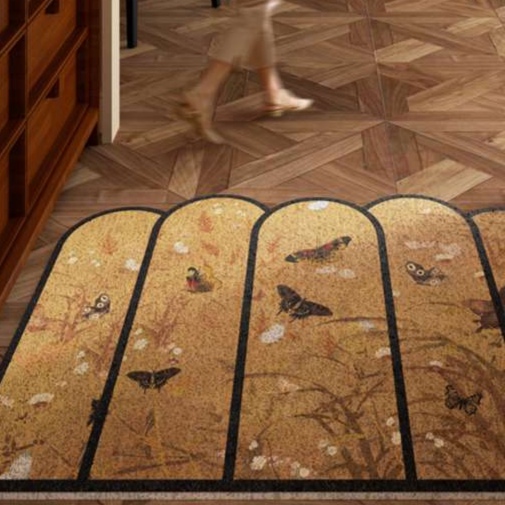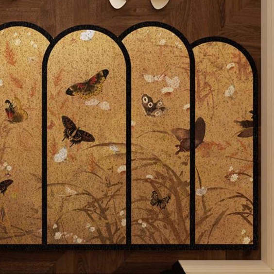復古調の優雅な蝶々模様が際立つ屋内用玄関マット。アーチ状のデザインが特徴で、和洋問わず様々なインテリアと美しく調和します。高級感あふれる仕上がりが、玄関を華やかに演出し、訪れる人々に温かい印象を与えます。快適さとスタイルを兼ね備えたこのマットは、毎日の出入りをより特別なものにしてくれるでしょう。