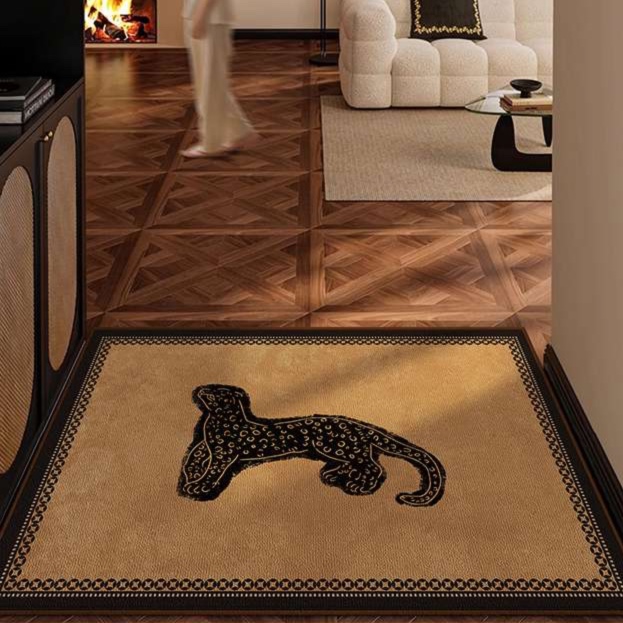高級感漂う室内用玄関マット。ヒョウをモチーフにした独特なデザインが目を引き、縁取りの装飾が洗練された雰囲気を演出。耐久性に優れ、滑り止め加工が施されているため、安全性も抜群。モダンなインテリアにぴったり調和し、訪れる人を温かく迎え入れるアイテムです。高品質な玄関マットで、家の顔となる玄関をスタイリッシュに彩ります。