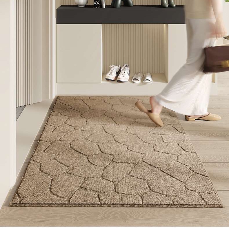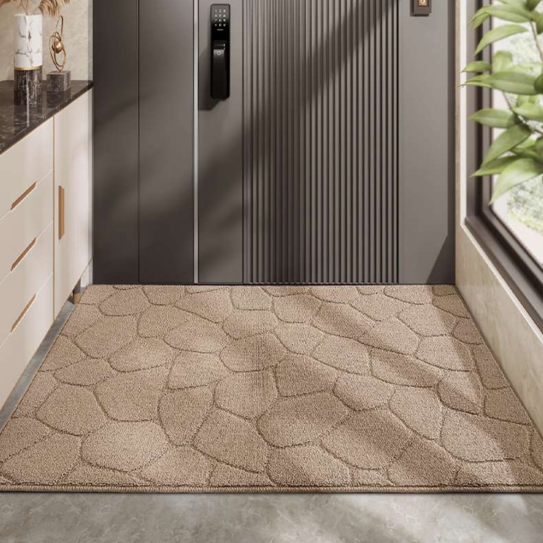 幾何学的な石畳デザインが施され、モダンで落ち着いた雰囲気を演出