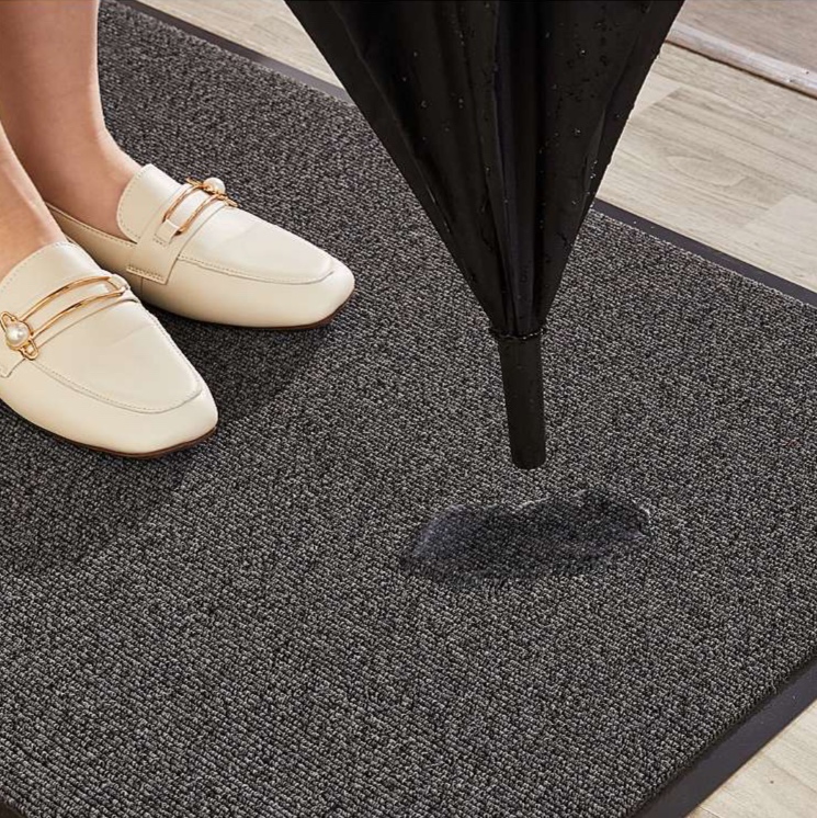 特殊なポリ塩化ビニル素材を使用し、柔軟性と耐久性に優れています。表面は高吸水性で、裏面は防水加工が施されており、長期間使用できる実用的な玄関マットです。汚れや水をしっかり吸収し、室内を清潔に保ちます。