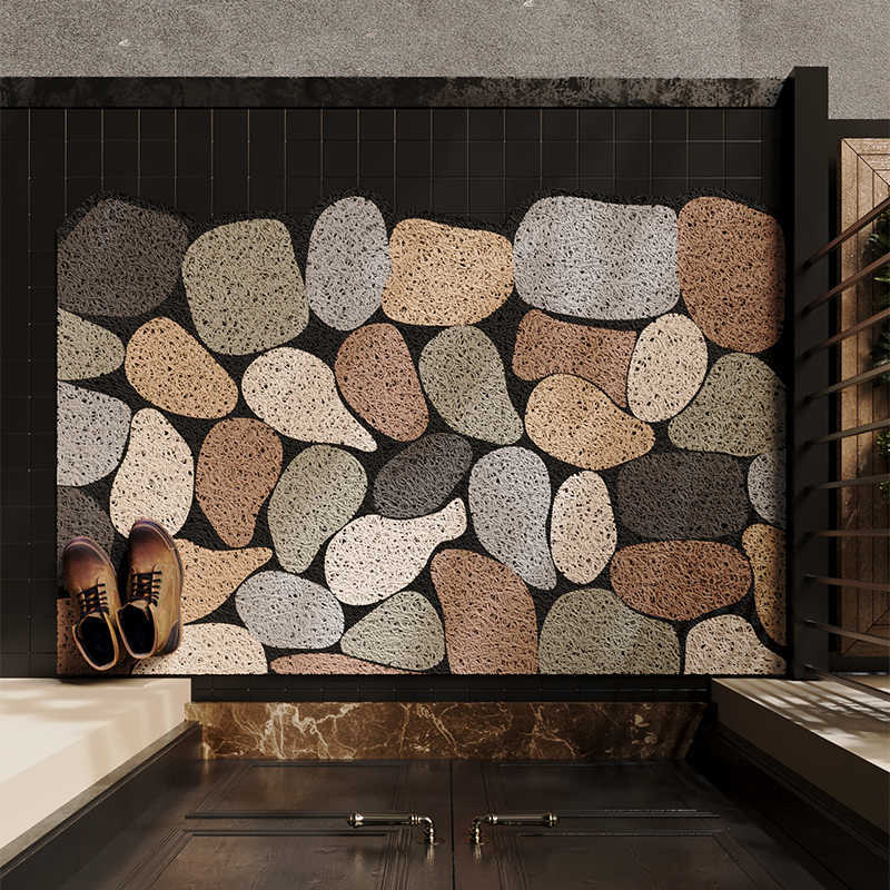 自然な小石を敷き詰めたようなデザインが魅力的な玄関マット 屋外用です。
