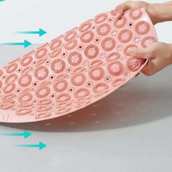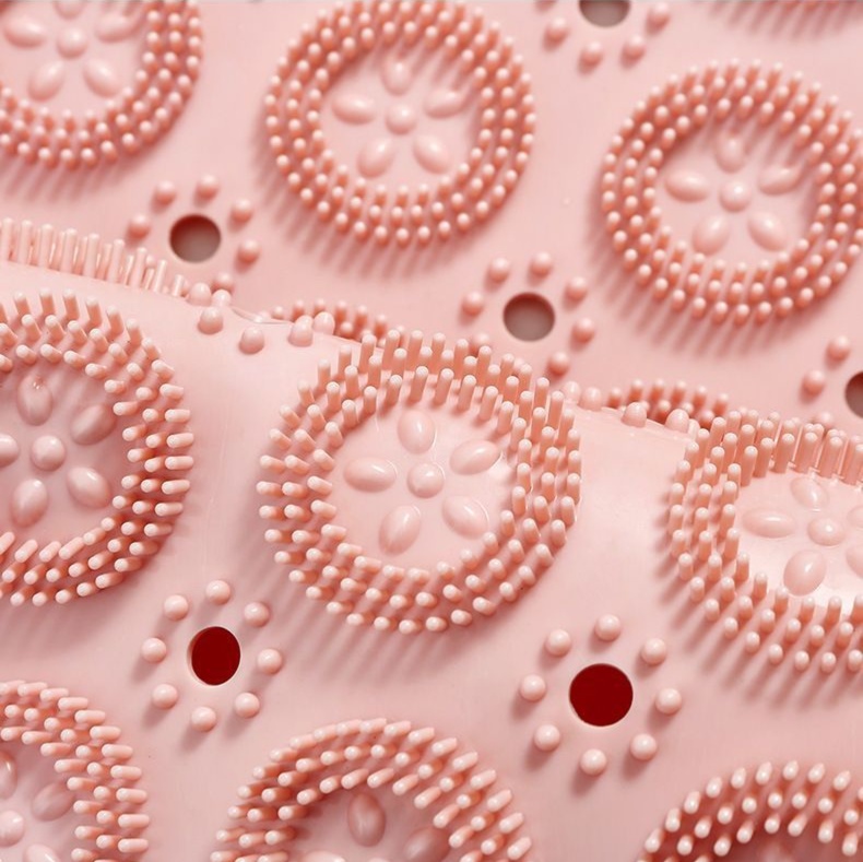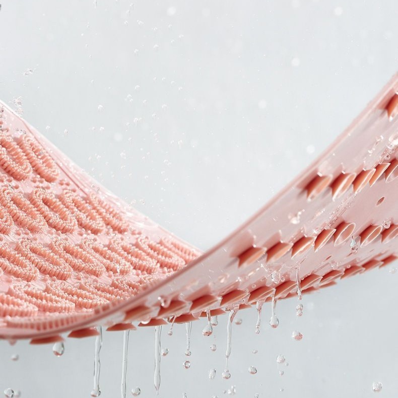 TPE素材の凹凸パターンが水をすばやく排水し、浴室での快適な使用感を実現