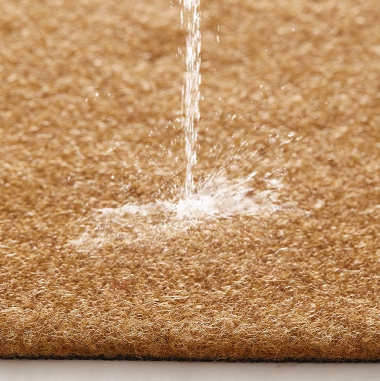 水をはじく特殊加工が施されており、雨の日でも安心して使用できる機能的な玄関マット